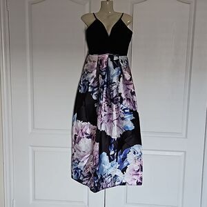 Sweet Storm Women's Floral Spaghetti Straps Maxi Dress Black/Purple Small