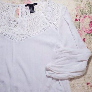 #flowy #lace #embroidered #white #whitelacetop #longsleevelacetop #forever21 #xxl #f21 #sweetheart #V-shape #button
