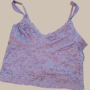 ** Sweetheart Neck Lace Cami Crop Top with Adjustable Strap, Lilac
