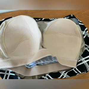 In very good, clean condition. Black and white pattern. Cute little side tie for extra style. Tank top style straps. Built in bra with padding that is not removable so it stays put and gives support!