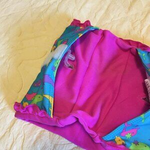 Good preowned condition single Swim School dolphin print fabric arm float for children in hot pink, blue, yelllow, green, and purple. Only one, not sure where the other is. It's sized medium to large. Please see tags for more specific details regarding the size and material. Free with $25 purchase (or more). Just add to bundle. From 2012 so could use a good thorough clean. (Pattern is no longer sold, so first image is just a promo with the closest approximation to colours and frilly details that I could find).