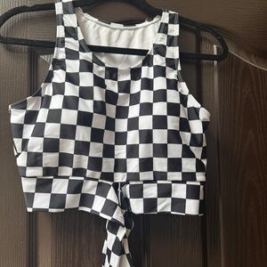 Meet.Curve swim crops with padded cups/shelf, solid black and white/black checkered with swim shorts (3 pieces) Tops size medium and shorts size large, never worn, excellent quality and condition.