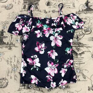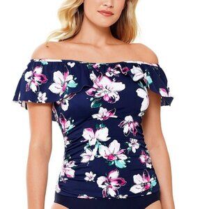 Turn on the charm in this sweet tankini top from Swim Solutions, an off-the-shoulder silhouette in a vibrant print.