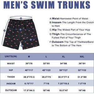 Multiple Pockets: Mens swim trunks have four pockets, two on the side, one Velcro pocket on the back, and one lining. Mens board shorts with pockets can carry small items, wallets, keys, phone or other.