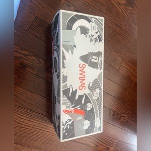 Swims shoe caps used to put over a dress shoe when having to walk around when it’s raining or snowing/ice. Worn once. Comes with convenient waterproof carrying bag to put the Swims in once getting to the office to prevent any mess. Size 8-9.5 men’s