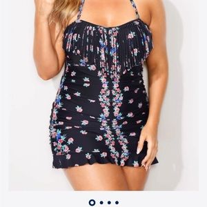 Meet Curves, fits great for Xl, never worn, skirt cover, ruffles help with middle abdomen coverage