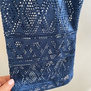 Swim suit cover up, but could also be worn as a tunic over a tank top with jeans. Great piece for your wardrobe. Beautiful shade of blue. V-neck with slits at both sides.