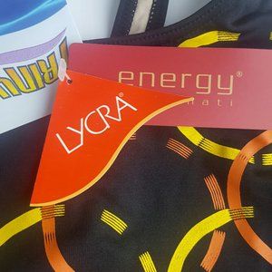 Swimsuit with Cap by Trinys Brazilian Made size M BLACK w/ circles pattern
