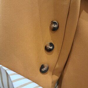 Beautiful swing back blazer. Has classy stripe lining and button details. Trendy rolled cuff style goes equally well with jeans and trousers. Swing back style allows ease of movement allowing you to look stylish on the go! A relaxed size large.