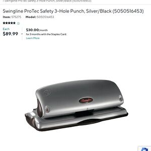 Three-hole paper punch features non-pinch safety feature and alignment indicators that turn green when paper is positioned correctly to ensure perfectly aligned punch holes every time.
