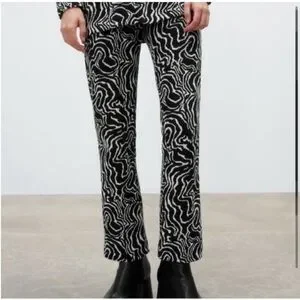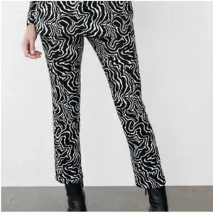 Black and white marble swirl print pattern jacquard pants. Slightly flared and cropped. Zipper and hook closure. Excellent condition.
