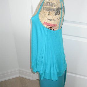 Swishy turquoise layered top with double spaghetti straps - 18" pit to pit - 26" shoulder to hem - new, never worn