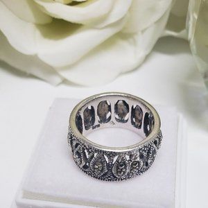 Swiss Marcasite Marquise Eternity Wide Band Ring