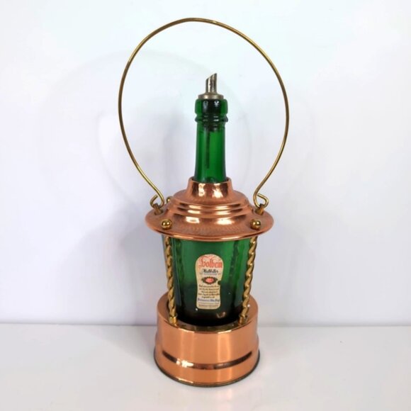 Swiss Reuge Music Box Nautical Ship Lamp Green Etched Glass Copper Decanter