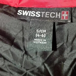 Swiss-Tech Puffer Down Jacket/Coat Red Full Zip Hooded Sz Small Packable