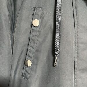 • Faux fur-lined hood with adjustable drawstrings