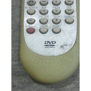 The Sylvania DVD Wireless Remote Control, model NB121, is a versatile and convenient remote designed for controlling your DVD, VCR, and Recorder Combo devices. With its wireless functionality, this remote offers effortless control from a distance of 5-10 meters, allowing you to navigate and play your favorite DVDs, VHS tapes, and recorded content from the comfort of your couch. The remote features a sleek gray and white design, with a built-in pointer for added convenience. The wireless connectivity ensures reliable performance and eliminates clutter, making it perfect for home entertainment setups. This remote is designed specifically for Sylvania's DVD, VCR, and Recorder Combo devices, ensuring seamless compatibility and intuitive control.