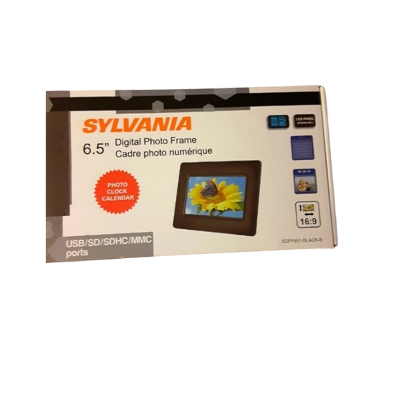 Sylvania SDPF651-B 6.5 " Digital Photo Frame BLACK Photo Clock Calendar