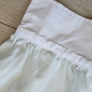 Sylvian Heach pastel mint green shift dress. features puffed 3/4 sleeves, crisp white contrast collar and cuffs, and a partial button-front placket for a refined look. Soft textured fabric adds subtle detail, while the tailored shift silhouette flatters effortlessly. Perfect for vintage lovers, cottagecore styling, or retro-inspired wardrobes.