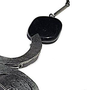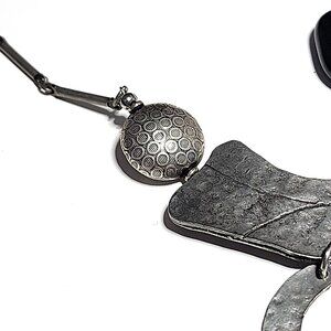 Black & pewter or pewter-tone Modernist asymmetrical necklace from Québec designer Sylvie Germain