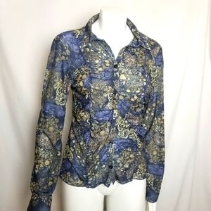 Symmetry brand blue yellow floral blouse