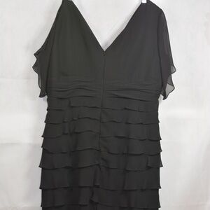 Gorgeous Black Dinner or Special Occasion Dress. It has lots of layers of light fabric pleating. Tag says SZ 22. Pit to Pit measures 23 inches. Symphony of Venus