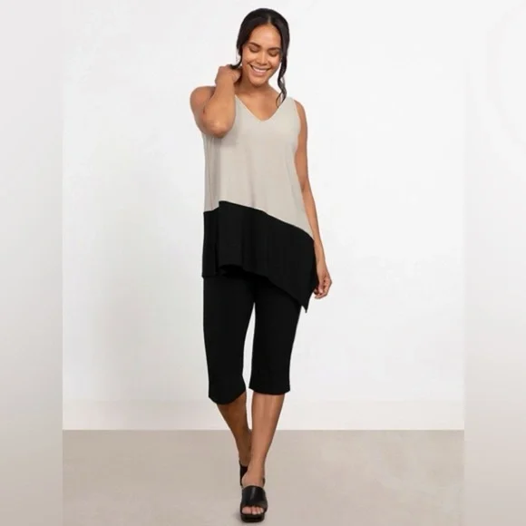 Soft to the touch and easy on the eyes Sympli's reversible angle tank with colorblocking detail is a must for any wardrobe!