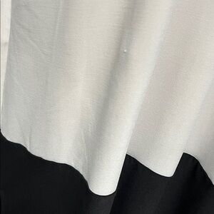 Scoop neck on one side and a v-neck on the reverse. Side slits at hem.