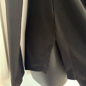 details: lower length in the back, wrinkle free material, short side slits, side draped cowl neck