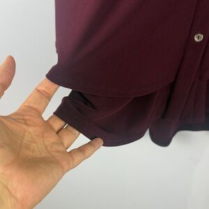 Sympli Deep Burgundy Flowy Fit Button Down Layered Hem Long Sleeve Blouse Size 4