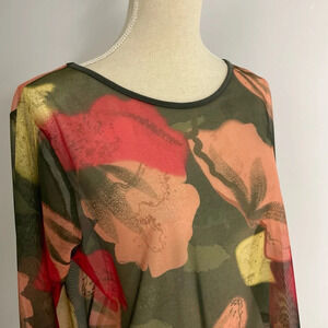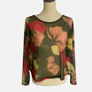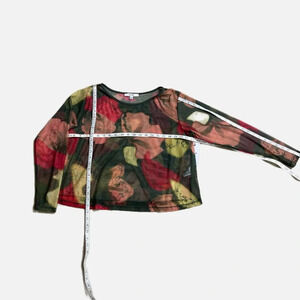 Sympli Floral Camo Mesh Cropped Top Size 12 Long Sleeve Scoop Neck NWT