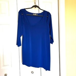 Sympli Nu Focus Asymmetric Hem Cut Out Shoulder 3/4 Sleeve Tunic Cobalt Blue