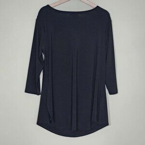 Sympli Top Women 12 Black Shawl Round Neck 3/4 Sleeve Lagenlook Drapey Goth