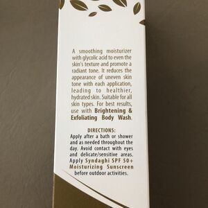 Syndaghi brightening & exfoliating body lotion for all skin types.