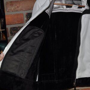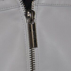 Sypder White Faux Leather Moto Bomber Jacket Black Fleece Trim 8