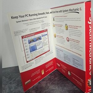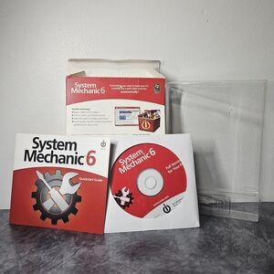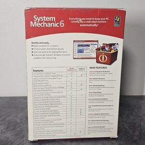 Pre-Owned optimize your PC with System Mechanic 6. This software offers full service for your computer, ensuring enhanced performance and speed. The red box design makes it easy to spot.