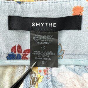 Sz 00- Smythe Mid-Rise Cropped Length Baby Blue Floral Flood Trouser Pants