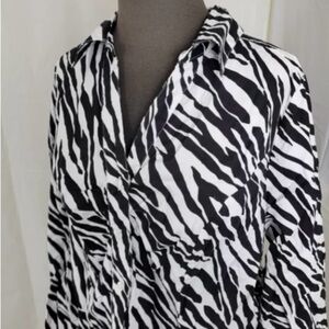 Lane Bryant Ladies Black and White Zebra Animal Print Blouse. Flattering V neck with darts in the back to accentuate your shape.