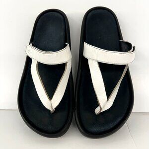 Sz 38EU Wolky Tahiti White Leather Slip On Flip Flop Thong Sandals