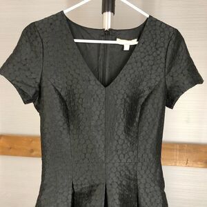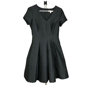 BANANA REPUBLIC Dots Black Pleated Ponte V-Neck Fit & Flare Short Sleeve Midi Dress Sz 4