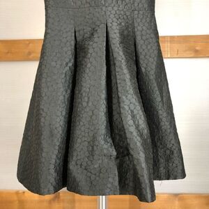 V-Neck short sleeve. Inverted pleats to give fullness & A-Line silhouette. Elegant, classic dress with lace-like dots texture. In good condition.