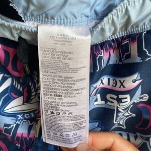 Previously used by my kiddo. Still in good condition and ready for the next kid. Elastic still in tact, string waist ties are functional and not just decorative, has the liner inside. To note would be a slight fade to the vibrancy of the navy blue from drying them on the clothes line and laundering. Also the two logo emblems aren’t “prefect” anymore. The tag at the back is folded and the Hurley on the front leg is now black and white. Feel free to message if you have questions.