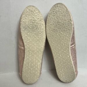 Sz 6.5 TOM WOMENS CANVAS FLATS SLIP ON SHOES ROSE GOLD GLITTER COLOR