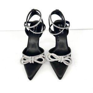 Sz 7.5 NWT Call It Spring Galaa Black Rhinestone Bow High Heels Women