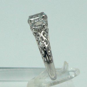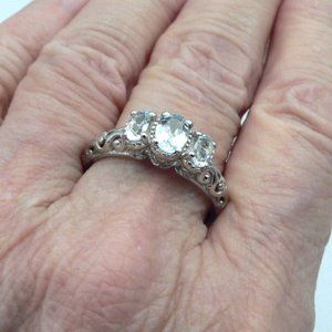 Sz 8 Genuine Espirito Santo Aquamarine 3 Stone Ring
