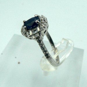 Sz 8 Genuine Kanchanaburi Blue Sapphire Halo Ring