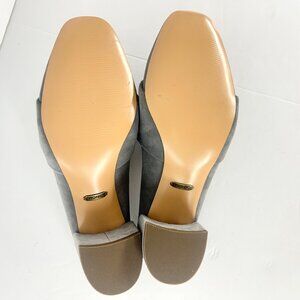 Sz 8- Vionic Plaza Presley Grey Suede Bow Front Square Toe Block Mules Heels Shoes