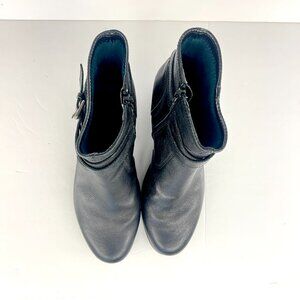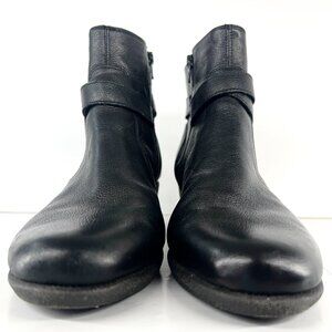 Sz 9 The Flexx Black Leather Buckle Zip Up Felt Lined Wedge Ankle Boot Bootie