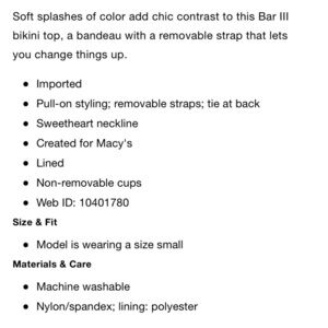 Very comfortable bandeau bikini top Size m/m & cheeky side cut hip bottoms in size m/m also. The neck strap is adjustable as well as removable from the top as seen in pic. This style of top was very flattering on a small cup lady like me. The bottoms I was never brave enough to wear (cheeky cut). I stuck to my solid black fuller coverage ones and just wore this top. I have a ton of swim wear so none of my bikinis are ever over used. I would give this one a 9/10 for condition still. ✨ Please feel free to request measurements you may need or send questions you have before purchasing. ✨