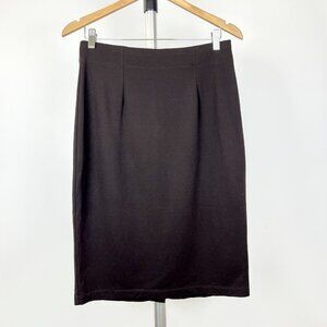 Sz M - Eileen Fisher Knee Length Chocolate Brown Ponte Italian Knit Pull On Pencil Skirt